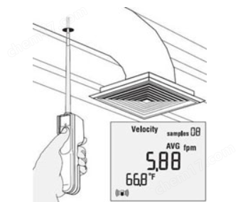 Fluke 923風速測量儀是一款可以分離顯示屏的風速計,顯示屏和傳感器一體時采用紅外通訊方式,當分離時采用無線通訊方式;顯示屏Z遠可以距離傳感器30m仍可以精確讀數,不會影響數據的實時性和測量精度。熱敏風速傳感器探杆可伸縮,傳感器上的保存按鈕方便隨時保存測量數據,支持保存數據的平均值運算;隻要輸入風管的尺寸,便可直接顯示風量;可以設定風速報警值,達到報警界限後蜂鳴震動報警。