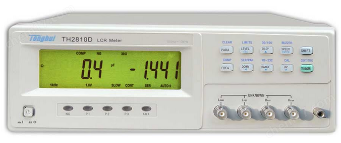 TH2810D型LCR數字電橋是本公司研製的低頻元件測量的換代產品, 其中應用多項元件測量的技術,大字符LCD顯示,采用SMT貼片工藝,操作方便,外形美觀。可滿足生產線質量保證、進貨檢驗及自動化生產的需要。