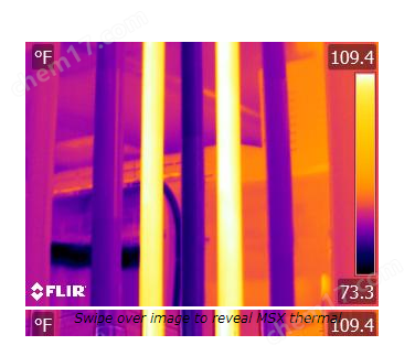 在普通熱圖像中,編號、標簽和其它關鍵特性通常都不明顯,常常需要單獨的照片用做參考。 不同的是,MSX實際上能將這類可視細節實時疊加到紅外圖像中,以創建能夠準確顯示正在升溫位置的多合一熱圖像。FLIR E50紅外熱像儀-新增加MSX功能