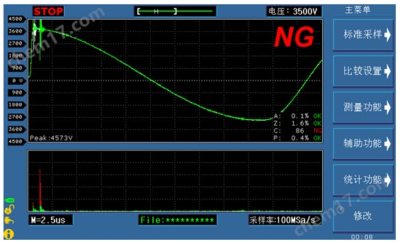 TH2883該係列TH2883S8-5脈衝式線圈測試儀采用當前主流的32bit CPU和高密度SMD貼裝工藝,65k色的7寸寬屏TFT顯示器。操作功能簡潔易用,顯示界麵清新亮麗。100V-5000V脈衝電壓,上限8通道掃描測試,zui高20個測試步驟,高達 200Msps的采樣率,6k Bytes的存儲深度,讓您的測試“無微不至”。標準樣本平均的使用,消磁脈衝的施加,高帶寬模擬信號采集電路,高保真電暈的提取以及非破壞性測試的開啟…… ,