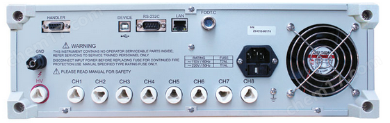 TH2883S8-5具有CH1-CH8、8個通道,TH2883S4-5具有CH1-CH4、4個通道,該係列通道位於後麵板,方便客戶使用,如圖所示:
