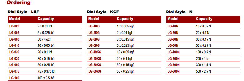 LG 係列主要特色:美國Chatillon LG-100機械測力計