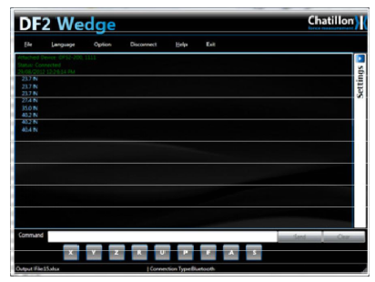 DF2 Wedge 通訊軟件支持Chatillon 數字式載荷和扭矩測力計與預裝 微軟Windows係統的計算機數據傳輸和通訊。用戶可以輕鬆地選擇所想要傳輸的數據和傳輸方式, 且這些數據可以輸入微 軟的Excel文件,並直接進行編輯、儲存、分析和打印。