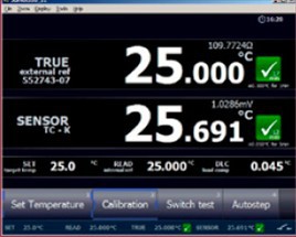 當RTC幹式爐達到了預設的溫度並且保持穩定以後液晶屏幕上會出現一個穩定指示符號。用戶可以方便快速的改變穩定的條件:外部參考探頭和被檢探頭。穩定條件設置保證了用戶可以正確校準。一個倒計時時間會顯示在溫度讀數旁邊用來指示達到穩定所需時間。