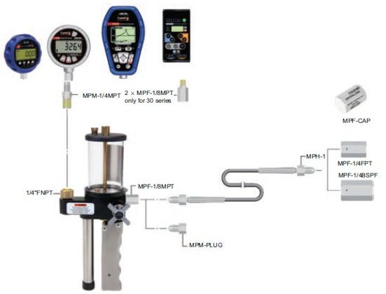 標準配置:T620H泵,MPF-1/8MPT(已安裝在手泵側麵),MPF-1/4FPT,1M連接管MPH-1,MPM-PLUG堵頭。
